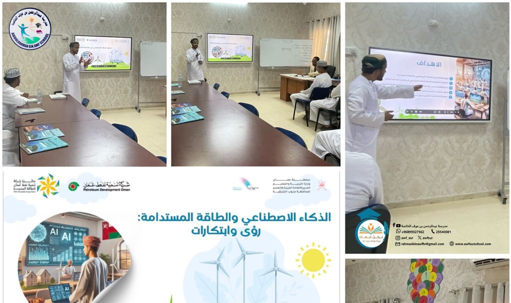 قدم الأستاذ خالد بن جمعة العريمي رئيس قسم الابتكار والأولمبياد العلمي بالمحافظة نبذه تعريفية عن المسابقة لتعزيز الوعي بأهمية الذكاء الاصطناعي والطاقة المستدامة لدى الطلاب وتشجيعهم على المشاركة في المسابقة و الابتكار.